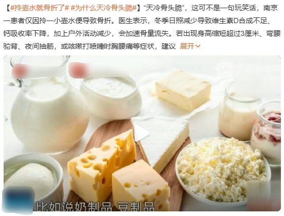 “就拎了一小壺水,怎么就骨折了?”近期南京患者的經歷,讓#拎壺水就骨折了# #為什么天冷骨頭脆# 兩大話題接連引發熱議。不少人疑惑,難道低溫真的會讓骨頭變“脆”?其實這并非骨頭本身的“季節魔法”,而是多重因素疊加的健康預警。