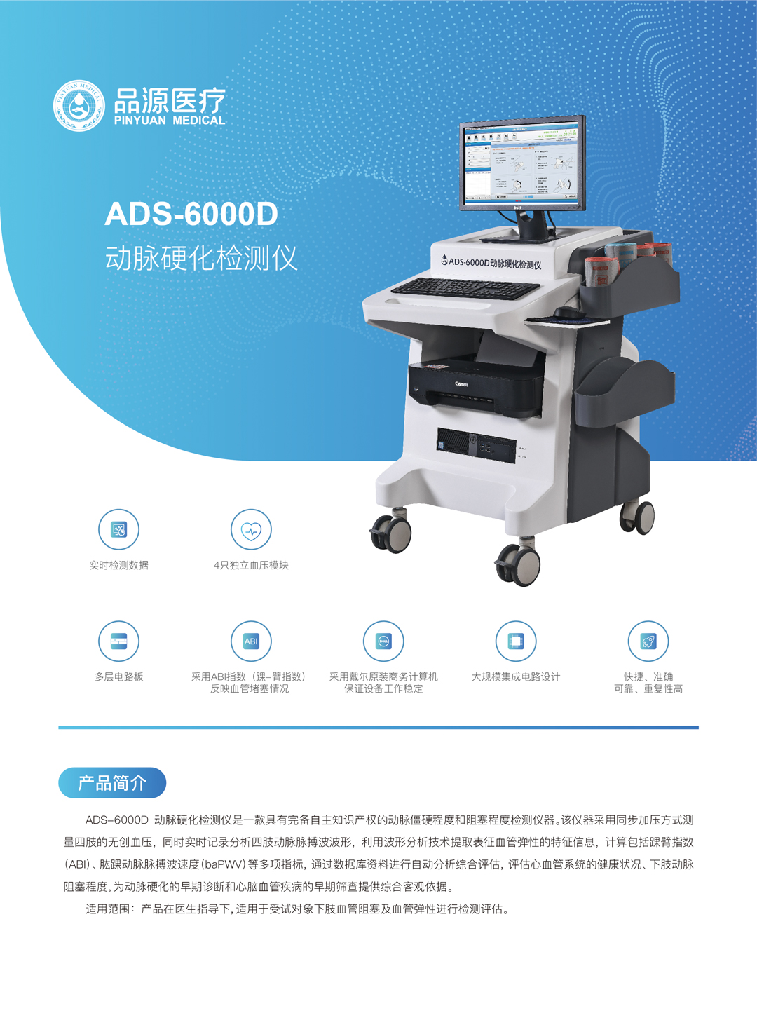 適用范圍:產品在醫生指導下,適用于受試對象下肢血管阻塞及血管彈性進行檢測評估。