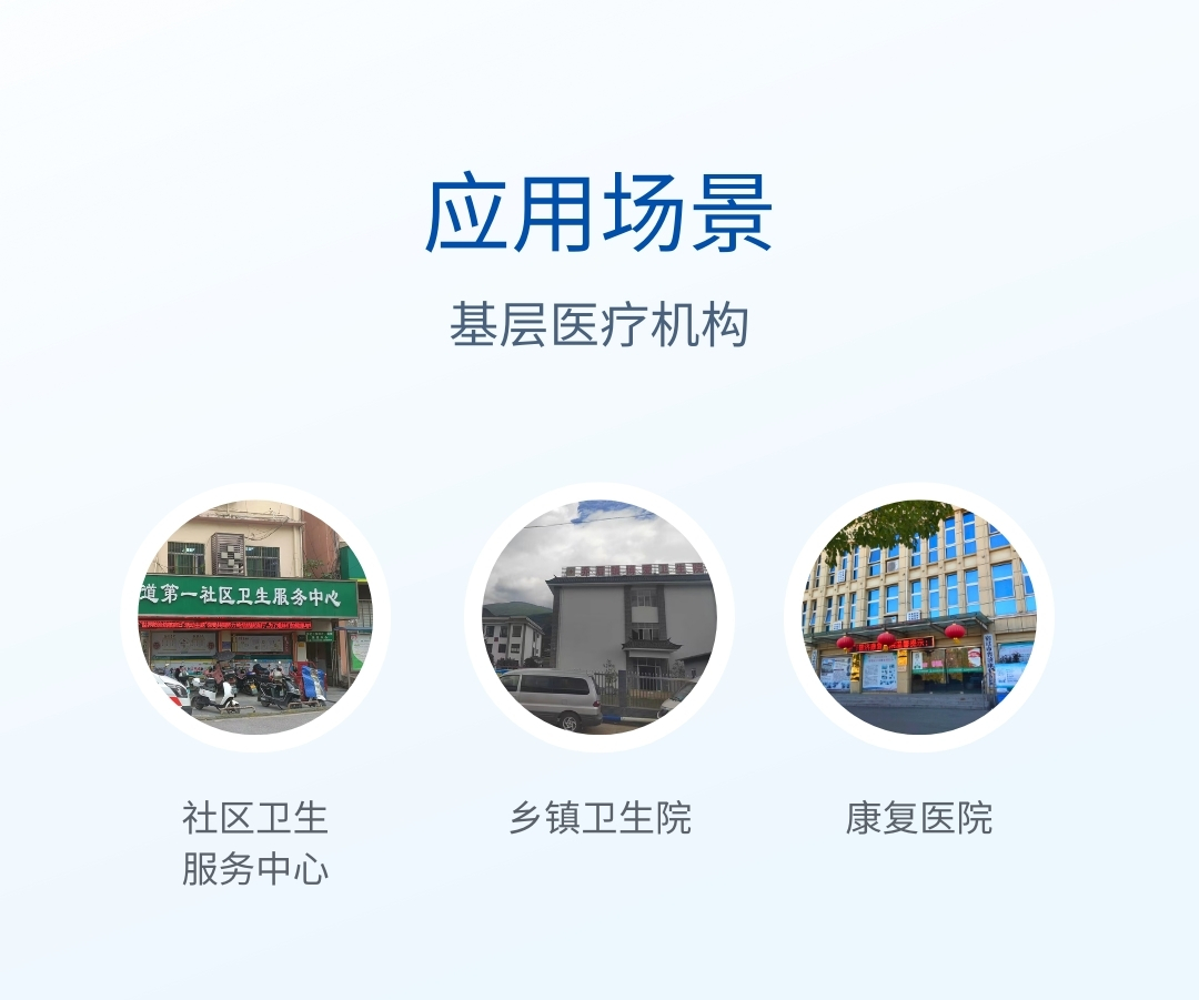 產品用途:本儀器適合社區服務中心、鄉鎮衛生院、一級民營醫院等基層醫療機構使用,同時適用于基層專科醫療機構如婦幼保健所、健康小屋、骨科醫院、老年病醫院、康復醫院、體檢中心等使用。